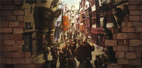 3、卡通欧美漫画风格的人物造型,3D打造的模型建筑,还原对角巷。