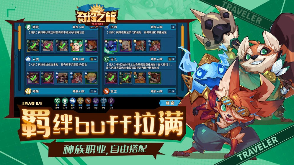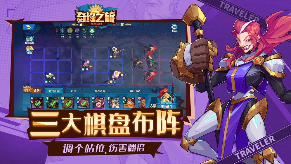 2、在旅途中招募英雄,布阵组合羁绊,在三棋盘战场上挥洒谋略。