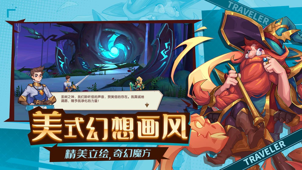 一款三棋盘战斗带有羁绊组合的卡牌游戏,为了拯救哥哥,拯救世界,年轻的小王子踏上了探秘“魔方世界”,寻访十大种族,收集神器【阿萨之泪】碎片的旅途。在旅途中招募英雄,布阵组合羁绊,在三棋盘战场上挥洒谋略。你将带领你的旅团挑战“萌”龙、解谜魔方、历经试炼,最终复原世界。这里,是你传奇旅途的开始。