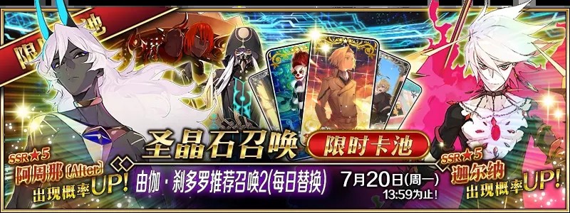 3、9号和11号芭娜娜会和迦尔纳双人UP,其余都是单人UP,玩家们自行选择是哪天进行抽取,到底是要一个还是我全都要。其实最好是单up抽取,毕竟迦尔纳可以在别的池子里抽。
